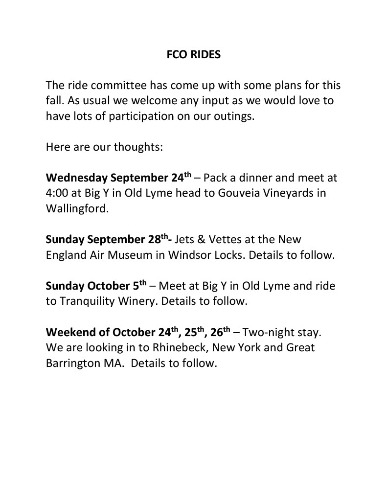 - FCO “Ice Breaker” ride. April 14th (weather and roads permitting)